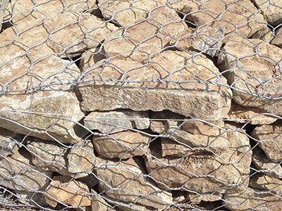 石笼网由高抗腐蚀、高强度、具有延展性的低碳钢丝或者包覆PVC的以上钢丝使用机械编织而成,使用该网制作而成的箱型结构就是石笼网箱。根据ASTM和EN标准,所使用的低碳钢丝直径根据工程设计要求而不同。一般介于2.0-4.0mm之间,石笼网钢丝的抗拉强度不少于38kg/m2,金属镀层重量一般高于245g/m2,石笼网片的边缘线直径一般要大于网线直径。其双线绞合部分的长度不得小于50mm.以保证绞合部分钢丝的金属镀层和PVC镀层不受破坏。