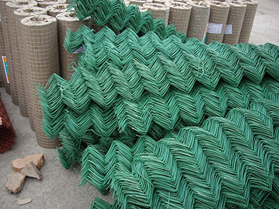 勾花网是由勾花网机(菱形网机)对各种材质的金属丝钩编而成,可分为折边缩把,拧边锁把两种。